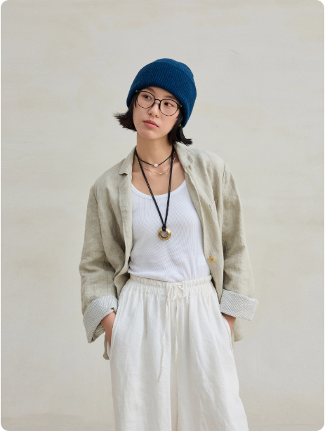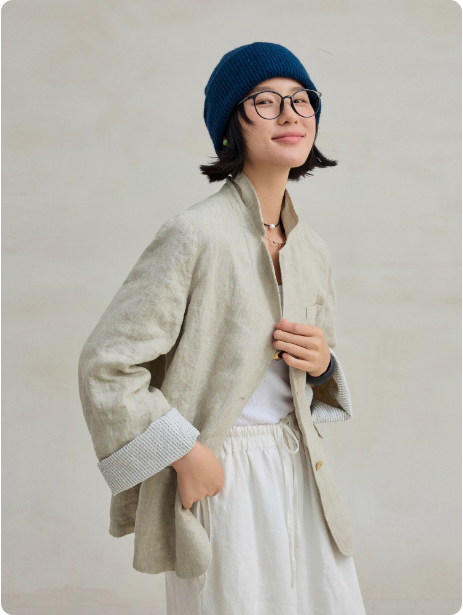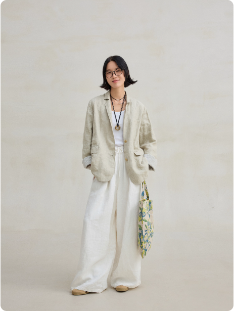 亚麻汉麻双色色织盐缩砂洗文艺休闲双层西装外套