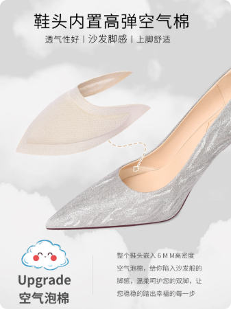 公主鞋银色尖头高跟鞋女主婚鞋新娘伴娘水晶鞋平时可穿空气棉