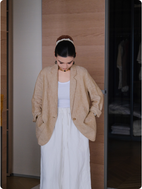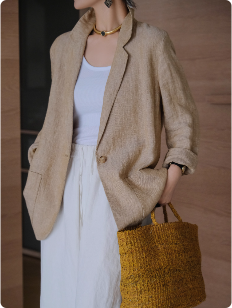 自然主义文艺态度汉麻亚麻混纺双色色织休闲显瘦西装外套