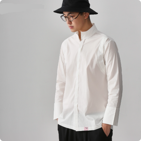 男装潮流休闲长袖修身衬衫白色