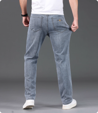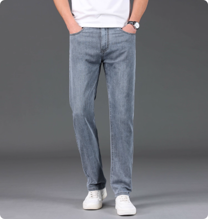 高端夏季男士牛仔裤薄款宽松弹力舒适直筒休闲长裤