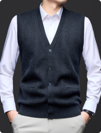 秋冬季爸爸装中老年男士羊毛马甲保暖针织外套开衫坎肩