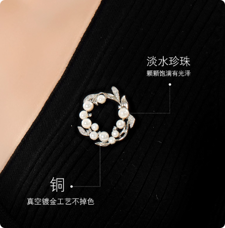 橄榄枝花环珍珠胸针女胸花轻奢高档百搭潮气质