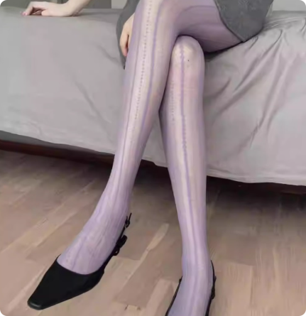 薄款丝袜复古花纹显瘦连裤袜秋季镂空透肉紫色防勾丝袜