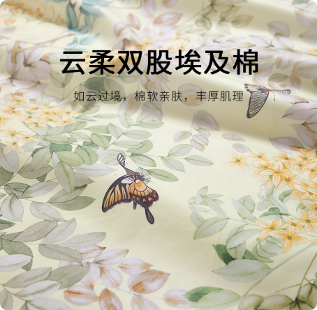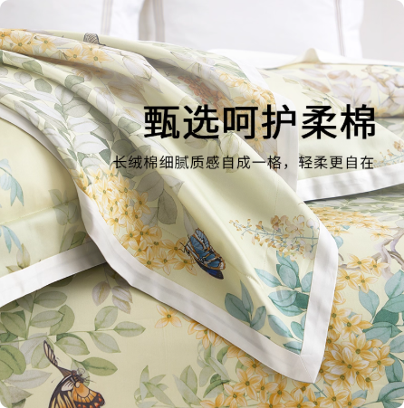 蝶栖花楹-AB面印花大师手绘典藏 床单款四件套,蝶栖花楹-AB面印花大师手绘典藏 床笠款四件套