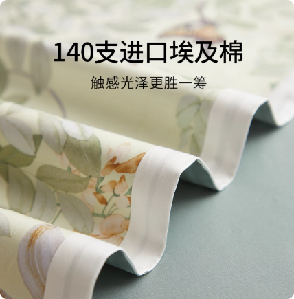进口全棉140支埃及棉印花四件套高端床上用品纯棉简约被套床单款