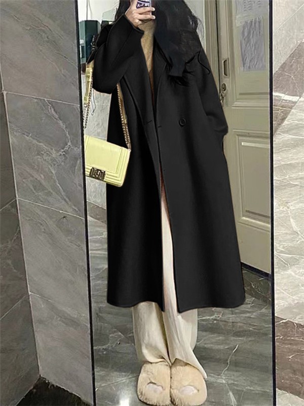 燕麦色双面羊绒大衣女2024年韩版中长款双排扣高端羊毛呢大衣外套