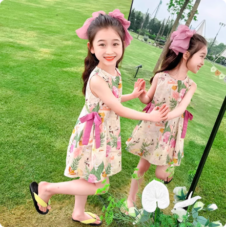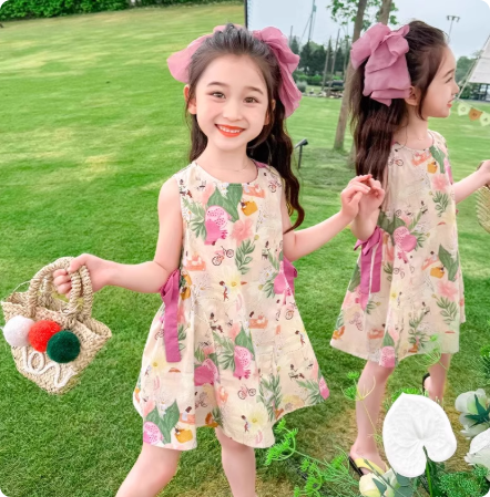 女童纯棉背心连衣裙夏季2025新款儿童无袖沙滩碎花裙子公主裙
