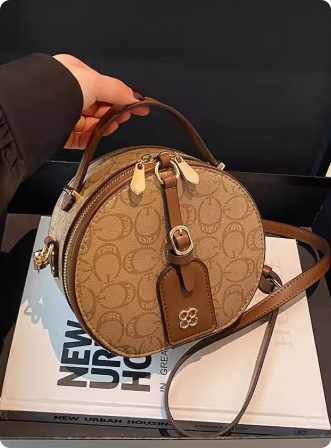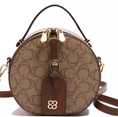 高级感圆饼小包包女2025夏天百搭印花小圆包洋气百搭斜挎手拎小包