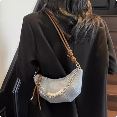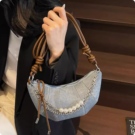 高级感小众包包女夏2025新款时尚斜挎牛角包韩版ins爆款