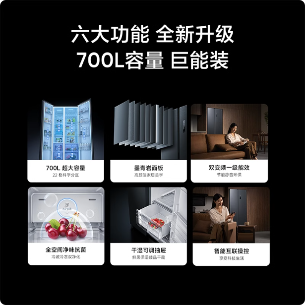 700L双开对开门风冷无霜一级智能大容量变频静音家用冰箱