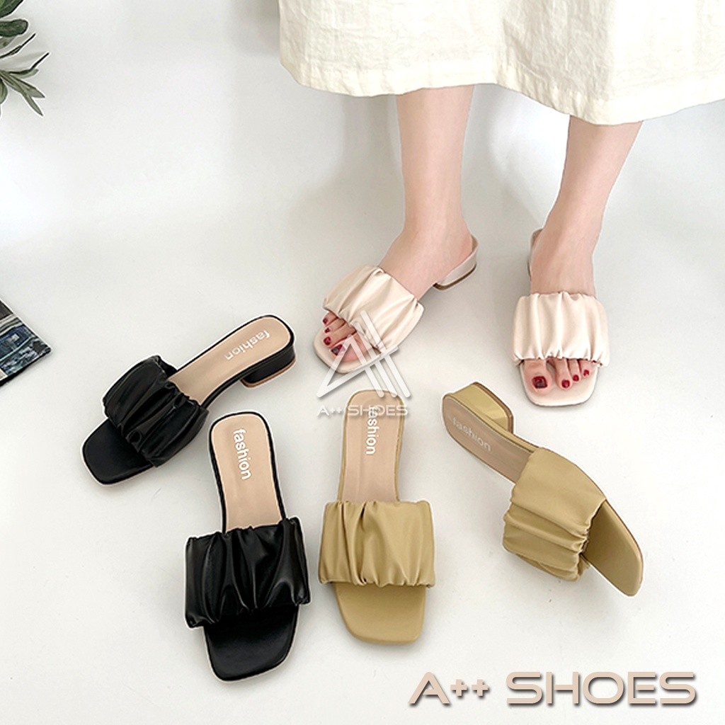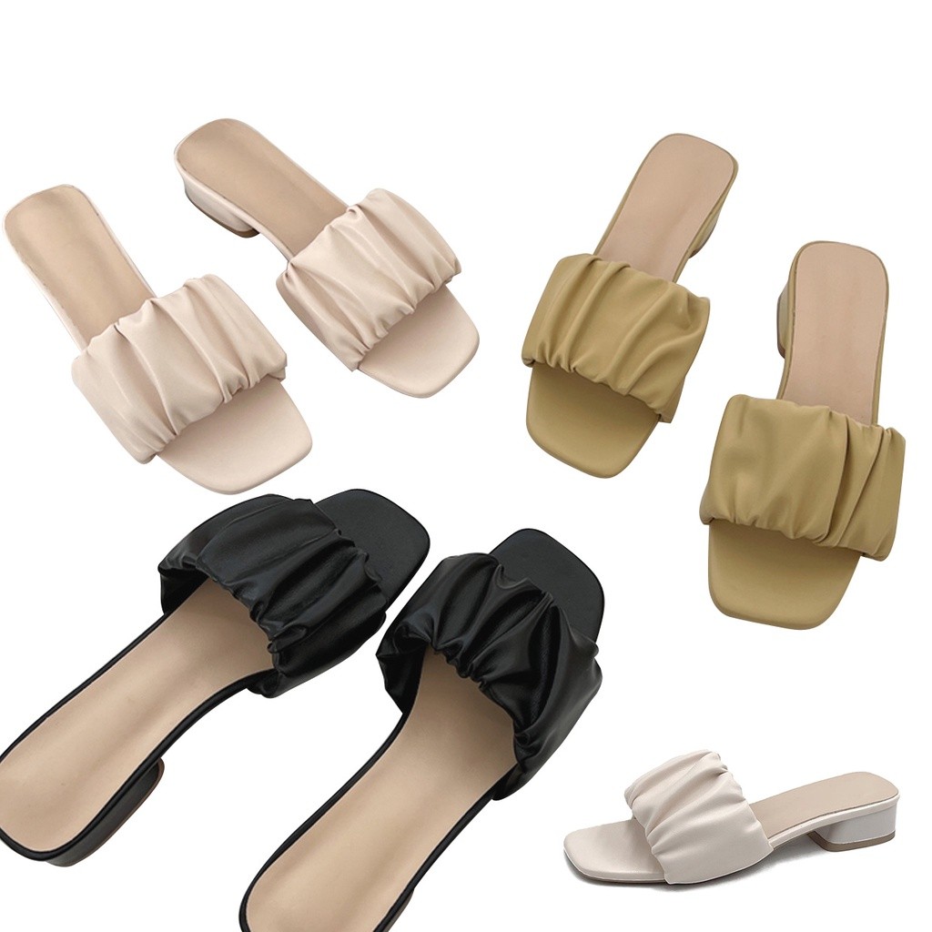A++⛅粗跟/平底⛅云朵拖鞋 皱皱一字拖 皱褶拖鞋 平底凉拖鞋 抓皱拖鞋 低跟粗跟拖鞋 一字拖鞋 皱皱拖 ~ 正常