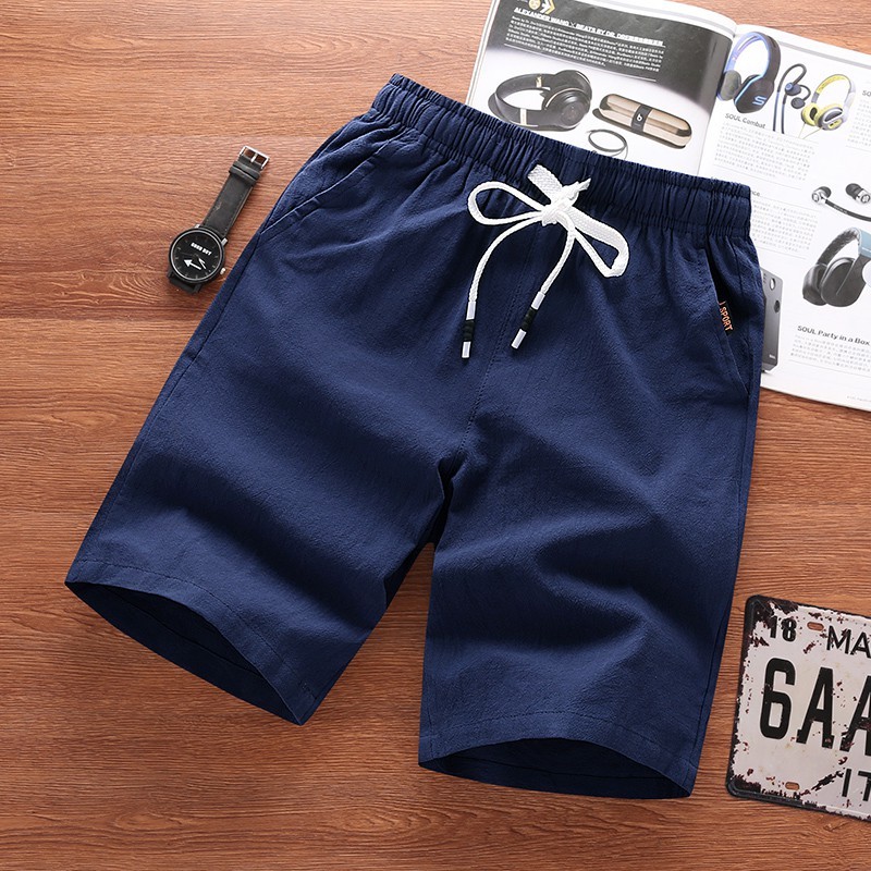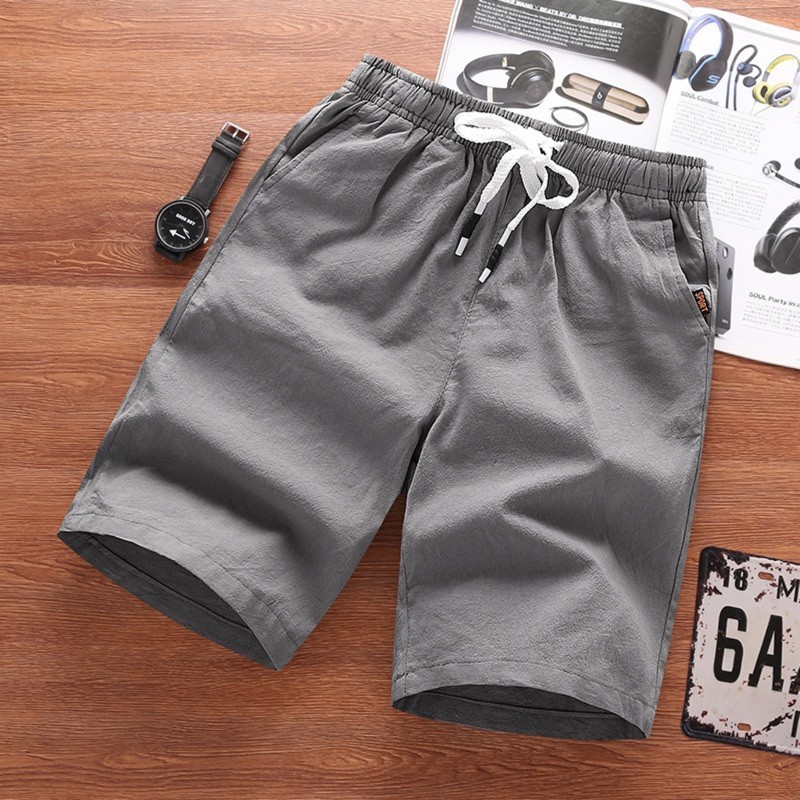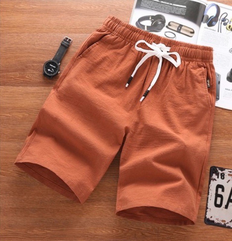 【台湾发货】A2C影片实拍微弹棉麻布料夏季 男生短裤 百搭松紧腰围短裤 休闲短裤 男士短裤 海滩风 实搭五分短裤 短裤