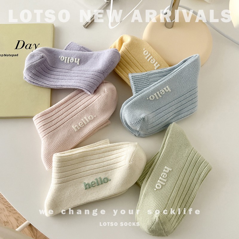 LOTSO SOCKS 日系小清新奶油中筒袜 字母烫印 春夏新款 女袜 袜子 穿搭 #LM037
