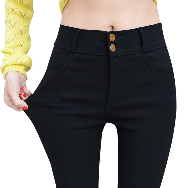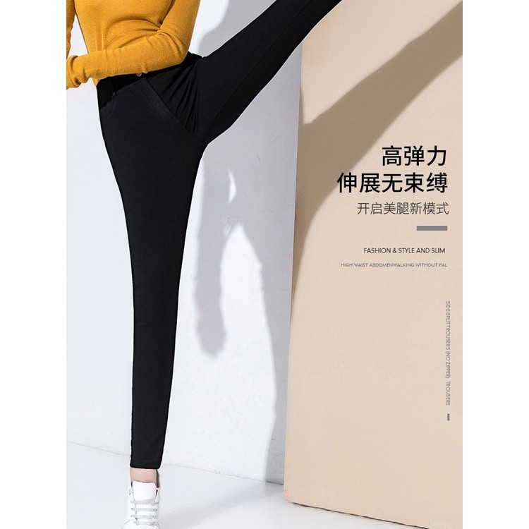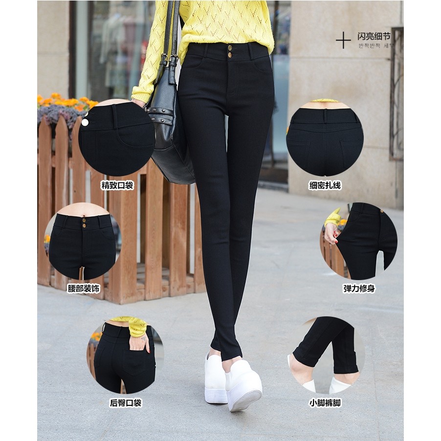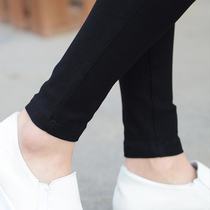 黑色弹力长裤S-3XL【现货】正韩长裤内搭裤外穿款春松紧高腰黑色九分合身显瘦窄管铅笔裤弹力长裤 韩妞必备